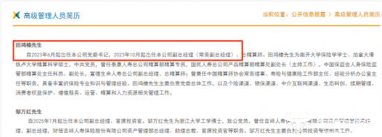 一般来说,寿险公司中董事长和总经理是公司最核心的管理层,复星保德信人寿是中外合资险企,其党委书记并不是董事长曾明光出任,而是田鸿榛自2023年6月出任,直到目前他依旧担任该职。