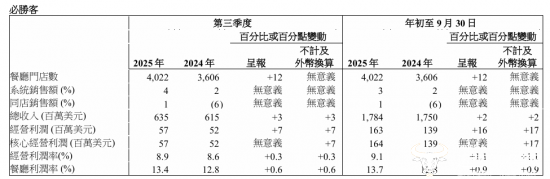 财报数据显示,必胜客第三季度总收入为6.35亿美元,约为人民币42.13亿元,系统销售额同比增长4%,同店销售额同比增长1%,经营利润同比增长7%至0.57亿美元,约为4.05亿元人民币,且已连续6个季度保持餐厅利润同比提升。