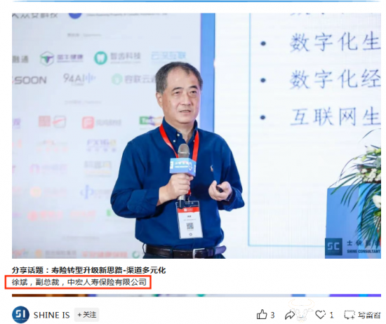 首先,可以肯定的是这位总经理助理,就是此前多次以副总裁身份出现的徐斌。在2021年业内多场有关科技的公开活动中,中宏保险派出的高管为徐斌,职务为副总裁。而本次上任的徐斌正是负责中宏保险科技业务线的高管。