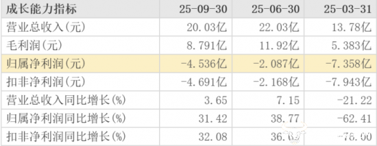 财报表明,用友网络2024年净利润为-20.61亿元,呈现亏损状态。2025年的前三个季度归母净利润分别为-7.358亿元、-2.087亿元、-4.536亿元,呈现持续亏损。