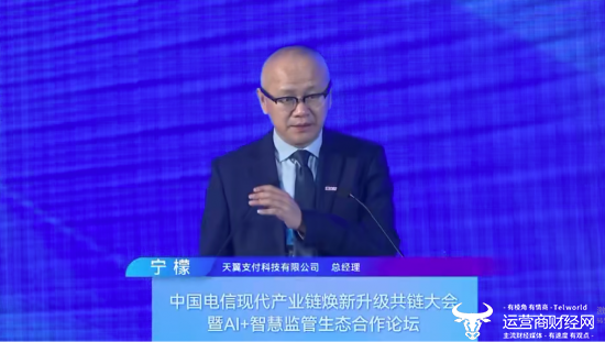 12月5日,中国电信现代产业链焕新升级共链大会暨AI+智慧监管生态合作论坛在广州如约开展。会上,天翼支付科技有限公司总经理宁檬发表了题为《聚势共链 智创未来 推动产业链焕新升级 共建合作共赢新生态》的演讲。
