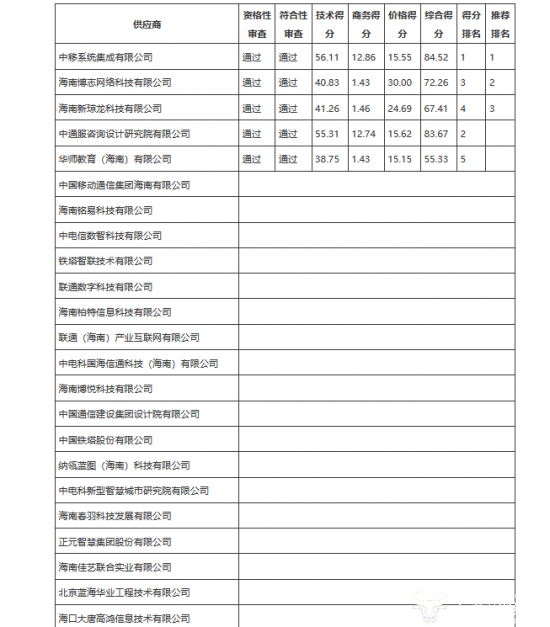 最终,中国移动旗下中移系统集成有限公司凭借84.52综合得分、4017万元报价成功中标,另外一家出身移动旗下的公司遗憾出局!这也意味着电信派出的8家公司和联通派出的两家公司全军覆没。