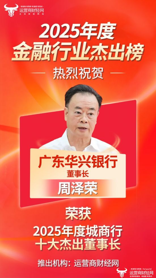 日前,运营商财经网倾力打造的“2025年度城商行十大杰出董事长”名单公布,广东华兴银行董事长周泽荣榜上有名。