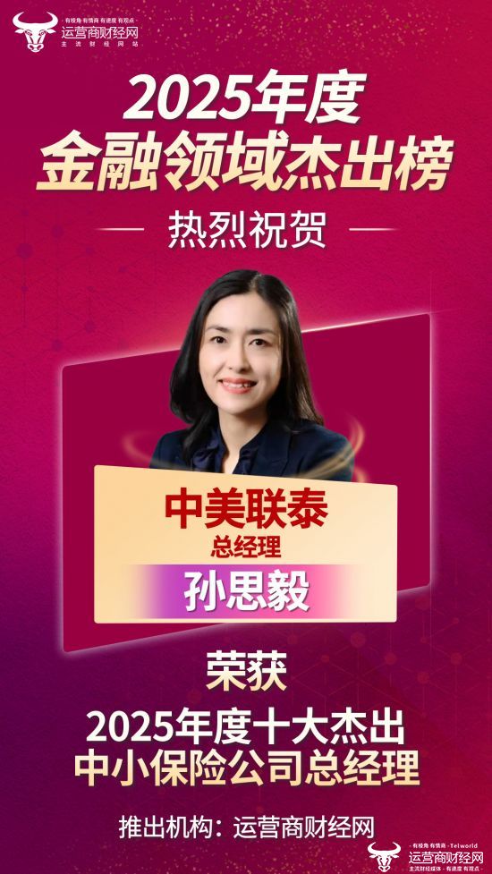 日前,国内知名财经媒体——运营商财经网独家打造的“2025年度十大杰出中小保险公司总经理榜”具体名单已经正式出炉,中美联泰总经理孙思毅也名列其中。