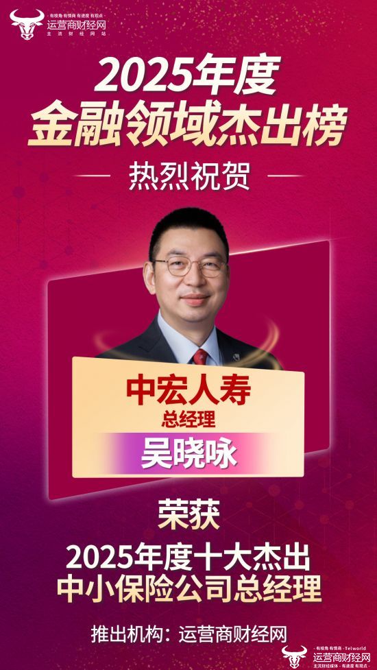 日前,国内知名财经媒体——运营商财经网独家打造的“2025年度十大杰出中小保险公司总经理榜”具体名单已经正式出炉,中宏人寿总经理吴晓咏入围该榜!