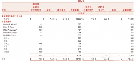 可以看出,屈翠容已在百胜中国工作多年,能力十分出众,而公司2024年年报显示,屈翠容2024年薪酬1422.2万美元,相较于2023年的2033.6万美元,下降了611.4万美元,但仍为公司董事中的最高薪酬。