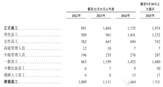 最新招股书数据显示,截至今年9月30日,巴奴有1974名正式员工,3308名兼职员工以及5818名外包员工,兼职员工及外包员工的数量占比超八成。