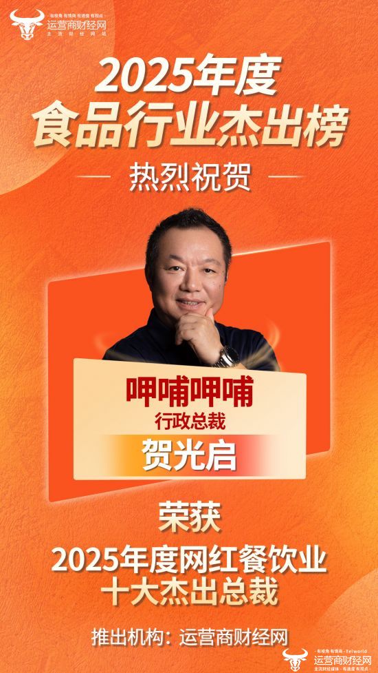 近日,由国内知名财经媒体运营商财经网独家推出的“2025年度网红餐饮业十大杰出总裁”榜单正式揭晓,其中呷哺呷哺行政总裁贺光启成功入选。