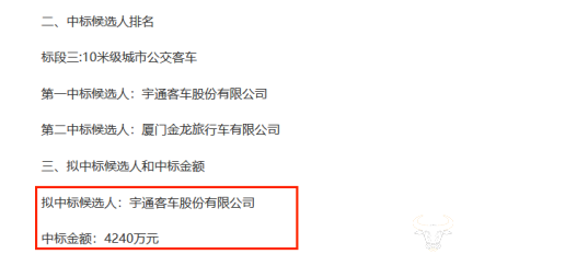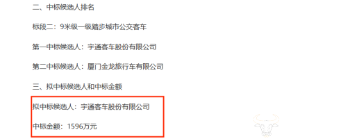 宇通客车股份有限公司几乎顶格报价,包揽项目标段二、三,其标段二中标金额为1596万元,仅仅比预算低了4万元;标段三中标金额为4240万元,比预算低10万元。