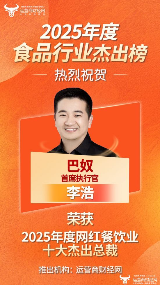 近日,由国内知名财经媒体运营商财经网独家打造的“2025年度网红餐饮业十大杰出总裁”正式公布,巴奴首席执行官李浩成功上榜!