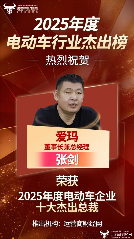 近期,由知名财经媒体运营商财经网推出的 “2025年度电动车十大杰出总裁”已经确定,爱玛董事长兼总经理张剑榜上有名。