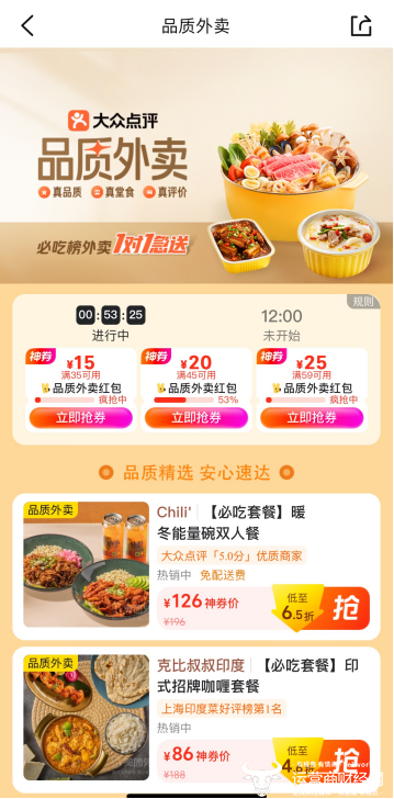 公开报道显示,此前,大众点评“品质外卖”已推出“高分堂食店工作餐”“周末外卖犒劳餐”等多个特别企划,满足消费者在不同场景下的品质外卖需求。