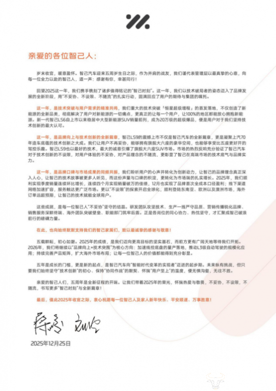智己汽车能够实现盈利,与其市场表现分不开,内部信中提到,2025年,智己汽车实现季度销量连续环比增长,连续4个月实现单月销量破万辆,12月份实现品牌首次全成本口径盈利。