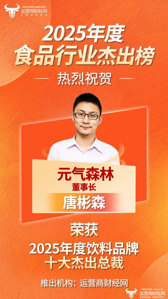 近日,由运营商财经网独家编制的“2025年度饮料品牌十大杰出总裁”名单正式揭晓,元气森林董事长唐彬森成功入选!