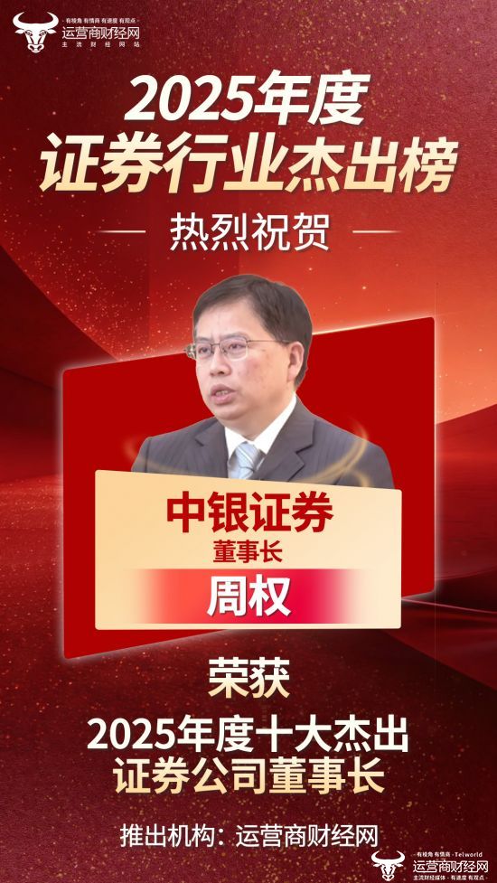 国内知名财经媒体——运营商财经网独家打造的“2025年度十大杰出证券公司董事长榜”名单,在日前正式出炉!中银证券现任董事长周权提名入围!