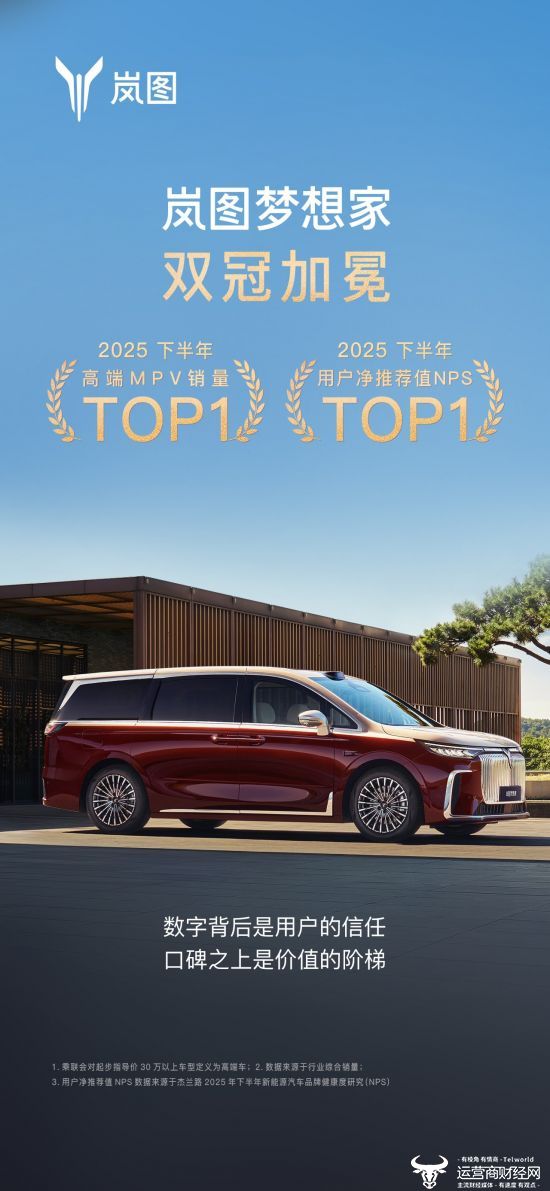 双冠的背后,是两种截然不同的胜利:销量第一,是产品在广阔市场中经受住严苛检验的证明,意味着岚图梦想家已通过市场检验,成为消费者用真金白银投票的成熟产品;NPS第一,则意味着岚图梦想家成为用户心中最值得推荐的新能源MPV,形成了口碑效应与圈层认同,在用户心智中构筑了难以撼动的信任与偏好。两者合一,标志着岚图梦想家完成了从“被选择”到“被推崇”的质变。凭借这双重权威认证,岚图梦想家正在重新系统性定义高端MPV的价值体系和价值标尺。
