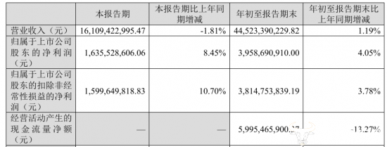 但三季度营业总收入为161.50亿元,相较于去年同期却同比下降了1.77%,这应该称不上“发展态势良好”,不能和另外两项指标一概而论。总体来说,双汇发展业绩非常好,因为利润指标最重要,万宏伟的话没错。