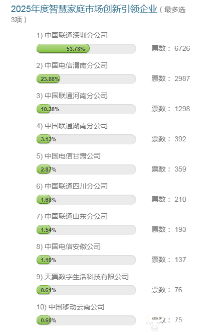 作为国内知名运营商行业的重要评选盛会及年度表彰平台,运营商财经网一年一度举办的财经TMT“领袖榜”评选活动,近日已经开启投票,得到了广泛关注。目前,“2025年度智慧家庭市场创新引领企业”的投票情况暂时公布。