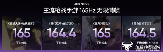 真我Neo8更带来超30款热门手游原生165帧模式,覆盖FPS、MOBA、竞速、格斗、音游五大主流品类。165Hz相比120Hz每秒多渲染45帧,画面更丝滑,高速移动场景全面告别拖影。真我Neo8还搭载新一代妙感触控芯,最高提供3800Hz瞬时触控采样率,十指360Hz报点率,配合旗舰同款游戏触显同步技术,让触控事件与显示帧精准对齐,让FPS游戏开镜瞄准响应更快,决胜击杀赢在毫秒。此外真我Neo8还配备超声波3D指纹,支持湿手秒解,让夜晚解锁不晃眼;晶铠玻璃提升了意外防护的全面保障。
