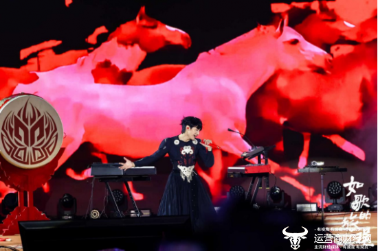 彝族歌手吉克隽逸以高亢辽阔、极具辨识度的民族唱腔登场,一曲《彩色的黑》如大凉山燃烧的火把,炽热而原始的力量穿透璀璨灯幕。阿吉太组合则带来了因短视频翻唱而广为人知的《阿衣莫》,马头琴的悠扬与呼麦的苍茫交织,成为民族流行融合的生动注脚。彝族说唱歌手Moseee莫色坚持用纯粹的彝语说唱,歌词中饱含对民族记忆与乡土深情的眷恋,质朴真挚,直击人心。音乐人CORSAK胡梦周身着彝族传统服饰,手持鼓槌,将激昂的电子节拍与传统的鼓点韵律创造性结合,让古老民族的脉搏在现代音浪中强劲跳动,实现了电子音乐与非遗灯会场景的惊艳碰撞。邓寓君(等什么君)以清冽嗓音,将数首国风经典细细铺展,勾勒出一幅江湖写意的水墨长卷;Winky诗身着一席精致国风妆造,浅吟低唱间,婉转戏腔与现场氛围曼妙相融,仿若千载古韵穿过时光的帘幕,在国风舞台翩然苏醒;以冬则身披一袭烟粉汉服,空灵声线如轻羽拂过星河,在万千烟火的交错中悠然流淌,仿佛将盛唐的璀璨天河引入灯海夜空,古典意境与现代视听在此刻浑然一体。