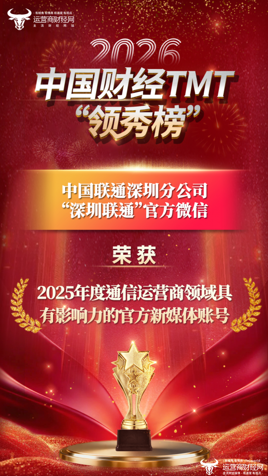 盛典上,“深圳联通”官方微信凭借出色的运营能力和宣传内容赢得了“2025年度通信运营商领域具有影响力的官方新媒体账号”奖。