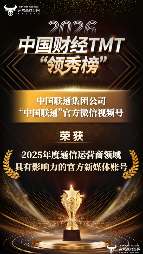 其中,热烈祝贺“中国联通”官方微信视频号凭着出色的表现,被评选为“2025年度通信运营商领域具有影响力的官方新媒体账号”。