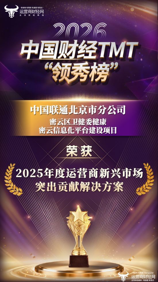 盛典期间,运营商财经网郑重宣布,北京联通的密云区卫健委健康密云信息化平台建设项目荣获“2025年度运营商新兴市场突出贡献解决方案”,热烈祝贺!