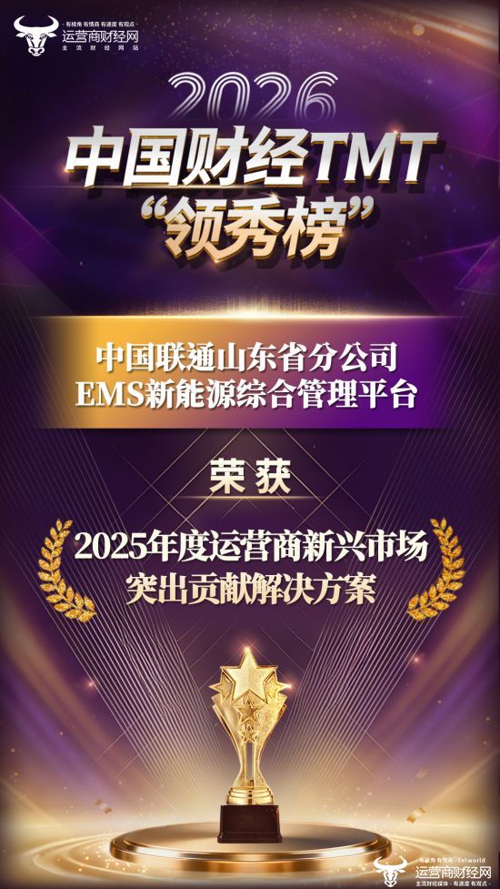 1月29日,2026中国财经TMT“领秀榜”盛典隆重举行,引发广泛关注。盛典期间,主办方运营商财经网公布了年度评选获奖名单,其中,山东联通项目EMS新能源综合管理平台被评选为“2025年度运营商新兴市场突出贡献解决方案”!