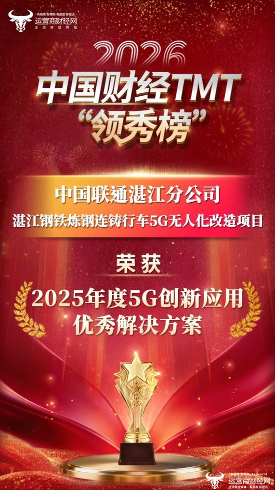 盛典期间,万众瞩目的年度评选获奖名单正式出炉!其中,中国联通湛江分公司的湛江钢铁炼钢连铸行车5G无人化改造项目榜上有名,获得“2025年度5G创新应用优秀解决方案”奖!