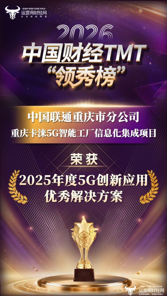盛典期间,运营商财经网公布了年度评选结果。其中,中国联通重庆市分公司的重庆卡涞5G智能工厂信息化集成项目获2025年度5G创新应用优秀解决方案”奖项!