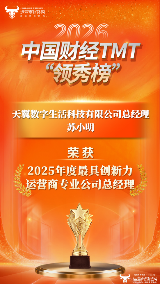 1月29日,2026中国财经TMT“领秀榜”获奖名单终于正式揭晓了,涉及三大运营商集团公司、各省公司、各专业公司、地市分公司、政企产品、市场产品、终端产品、行业优秀自媒体等。