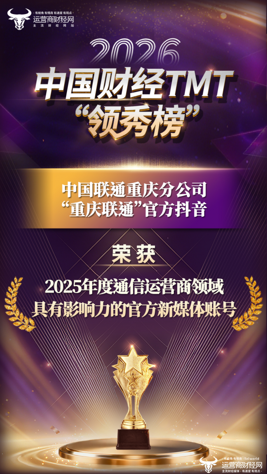 在盛典现场,运营商财经网正式公布了获奖企业的名单。其中,“重庆联通”官方抖音凭借出色的表现,荣获了“2025年度通信运营商领域具有影响力的官方新媒体账号”奖项。