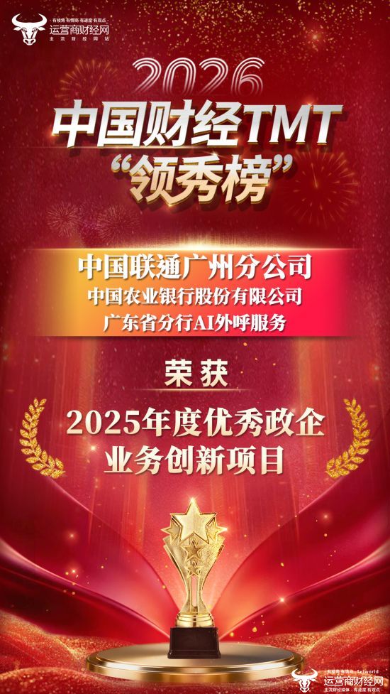 中国联通广州市分公司在多领域表现出色,在“2025年度优秀政企业务创新项目”这一奖项中,中国联通广州市分公司的中国农业银行股份有限公司广东省分行AI外呼服务项目崭露头角,获得“2025年度优秀政企业务创新项目”奖!