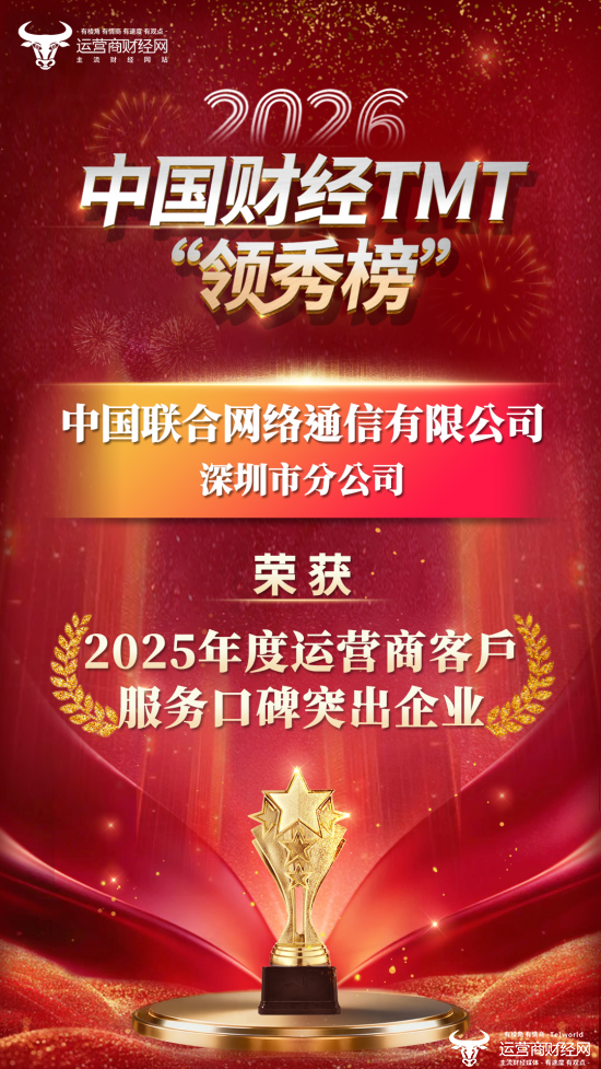 其中,中国联合网络通信有限公司深圳市分公司凭借自己出色的表现,成功获得“2025年度运营商客户服务口碑突出企业”奖项,热烈祝贺!
