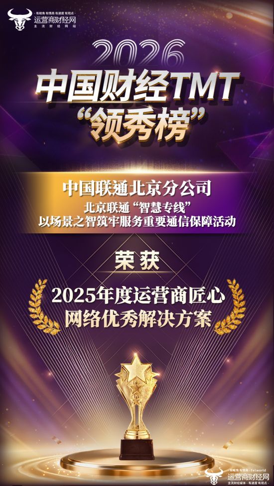 其中,北京联通项目——北京联通 “智慧专线”:以场景之智筑牢服务重要通信保障活动表现优异,荣获“2025年度运营商匠心网络优秀解决方案”。