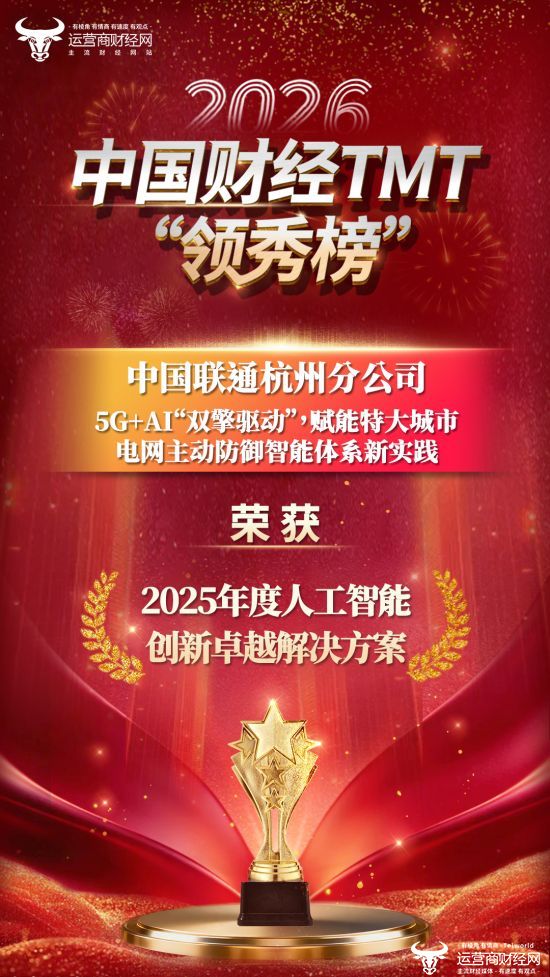在盛典上,运营商财经网正式公布了万众瞩目的获奖名单,其中,中国联通杭州分公司的5G+AI“双擎驱动”,赋能特大城市电网主动防御智能体系新实践表现不俗,斩获了“2025年度人工智能创新卓越解决方案”奖!恭喜他们!