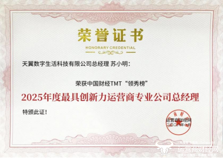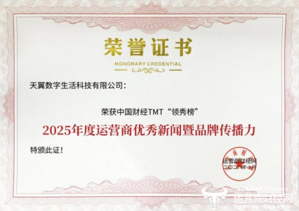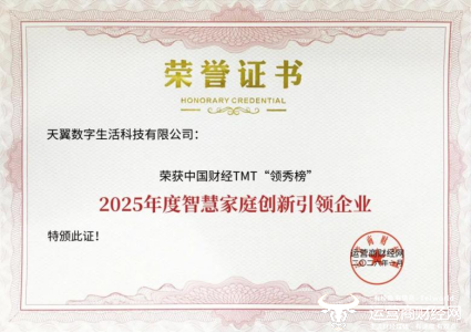 1月29日,在由运营商财经网举办的2026中国财经TMT“领秀榜”盛典中,天翼数字生活公司荣获2025年度优秀运营商专业公司、2025年度运营商最受关注的AI智能终端产品、2025年度智慧家庭市场创新引领企业等多个奖项。