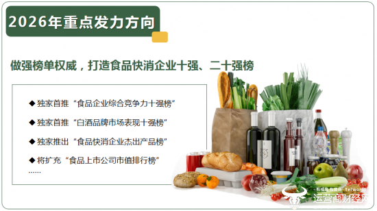 其次,持续锻造榜单影响力,计划推出食品快消企业 “十强”、“二十强”等综合及细分维度榜单,如产品榜、市值榜等,更立体地刻画行业格局。