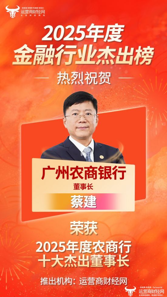 近期以来,运营商财经网针对各行各业过去一年的发展情况,打造了2025年度系列杰出榜单,在业内外引起了热烈反响。目前,“2025年度农商行十大杰出董事长”榜单已经确定,广州农商银行董事长蔡建上榜。