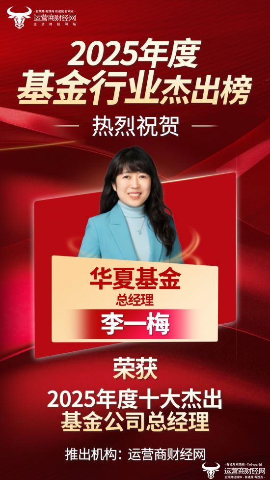 日前,国内知名财经媒体——运营商财经网独家打造的“2025年度十大杰出基金公司总经理榜”名单,重磅发布!华夏基金现任总经理李一梅榜上有名!祝贺!