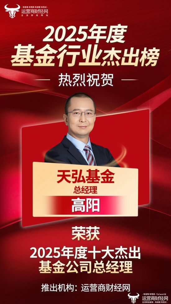 运营商财经网独家打造的“2025年度十大杰出基金公司总经理榜”在日前正式出炉!来自天弘基金的总经理高阳荣登上榜!恭喜!