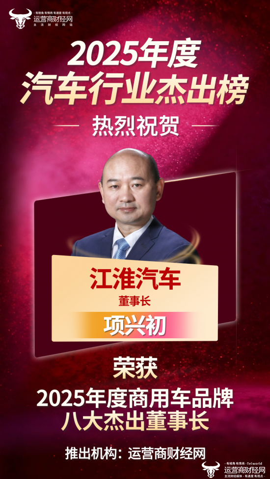 日前,国内知名财经媒体——运营商财经网独家打造的“2025年度商用车品牌八大杰出董事长”榜单终于出炉!在此热烈祝贺江淮汽车董事长项兴初上榜!