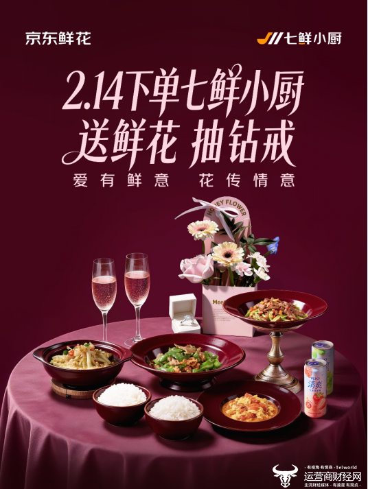 在冬日中寻一份暖意,新春前得一份甜蜜。2月14日是情人节,京东旗下品质餐饮品牌七鲜小厨推出情人节“下单赠礼”活动,联合京东鲜花在北京、上海、深圳、天津将随单赠送玫瑰,数量有限,先到先得。当天同步上线99元的“鲜花+美酒”情人节专属套餐,为节日增添气氛;社媒晒单还有机会得价值千元的1克拉钻戒,惊喜连连,爱意满满。