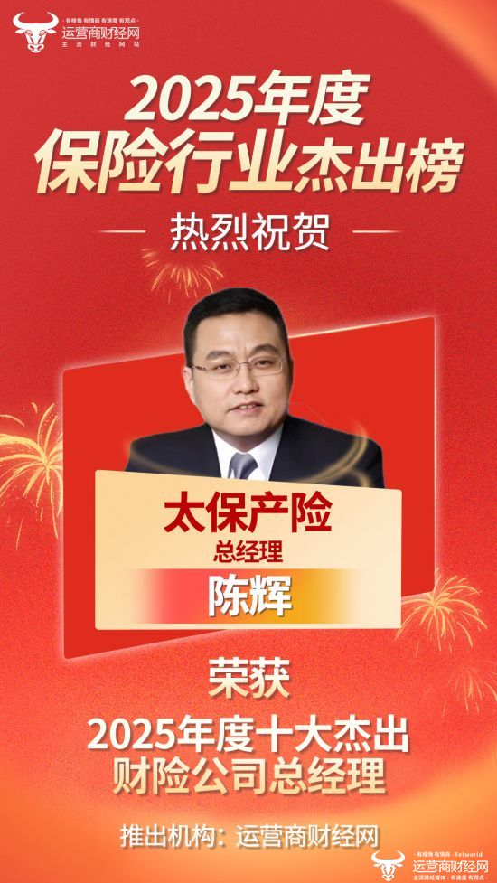 日前,运营商财经网独家打造的“2025年度十大杰出财险公司总经理榜”已经正式发布!经过多方考量,太保产险现任总经理陈辉凭借优秀表现,荣获此奖!