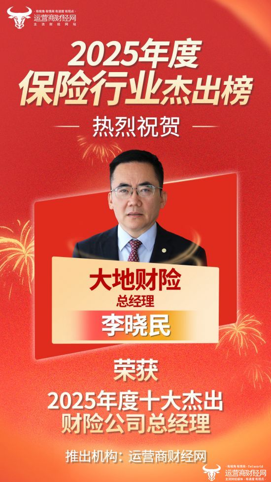 运营商财经网基于对金融行业的观察,独家打造的“2025年度十大杰出财险公司总经理”榜单目前已经正式发布。经过多方考量,将对过去一年财险行业表现不俗的个人和企业进行表彰。大地财险现任总经理李晓民榜上有名!