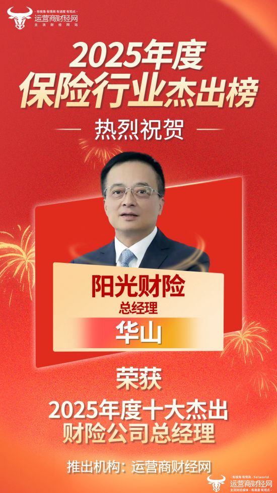 运营商财经网经过详细观察梳理,独家打造了“2025年度十大杰出财险公司总经理榜”。经过多方考量,阳光财险现任总经理华山以其优秀表现,荣登上榜!