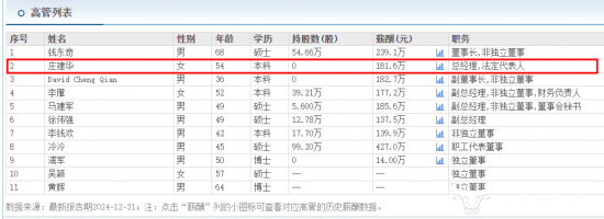 庄建华虽然在科沃斯当了16年的总经理,但其往年薪资并不领先。单说2024年,据东方财富网显示,其年薪为181.6万元,不如董事长钱东奇239.1万元、副总经理马建军185.6万元、职工代表董事冷泠427万元。