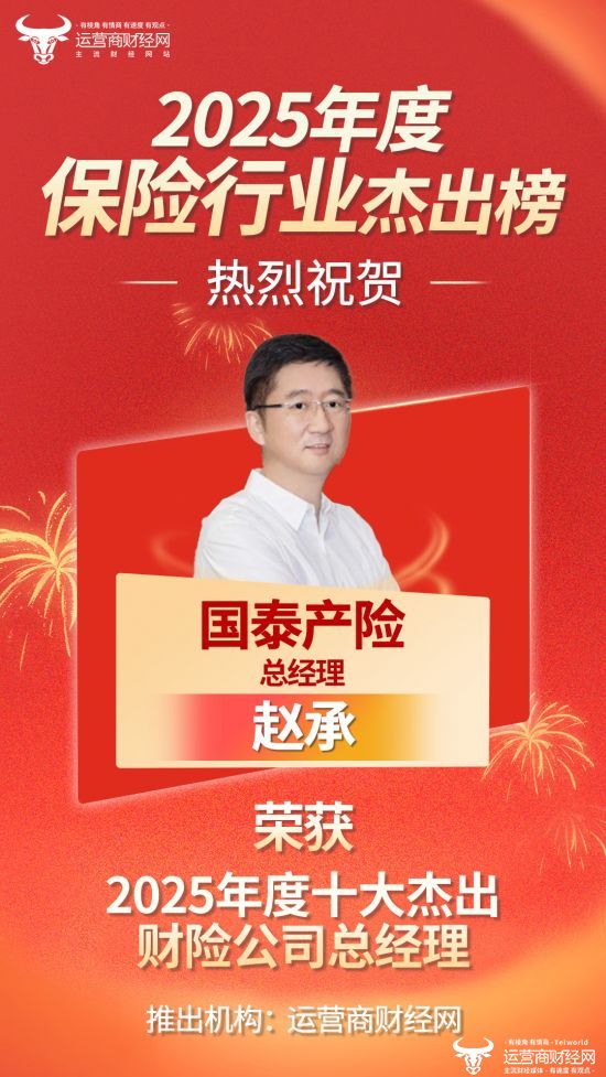 经过对行业的梳理,运营商财经网独家打造的“2025年度十大杰出财险公司总经理榜”日前正式发布!在多方考量后,国泰产险现任总经理赵承上榜!