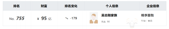 据悉,吴志刚今年已91岁高龄,他在1995年60岁退休后创立桃李面包,并于2015年带领桃李面包在A股上市,2019年,吴志刚卸任董事长职位,由其子吴学亮接任。而在2025年10月发的2025年胡润百富榜上,吴志刚家族以95亿元的财富,位列榜单第755位。按理来说,这一家族并不缺钱,不知为何会减持公司股份。
