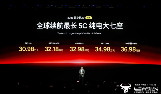 与此同时,2026款小鹏X9纯电版重磅上市,产品力全面对齐超级增程版,以“两种动力,同一个旗舰标准”的硬核实力重新定义高端家用大七座新标杆。纯电版新车共推出5款版型,包括665 Max、650 Ultra SE、650 Ultra、750 Ultra以及710 四驱 Ultra,官方指导售价分别为30.98万元、32.18万元、32.98万元、34.98万元及36.98万元。此次焕新,还带来了2026款小鹏X9增程版1602 Ultra SE,官方指导售价为32.18万元。